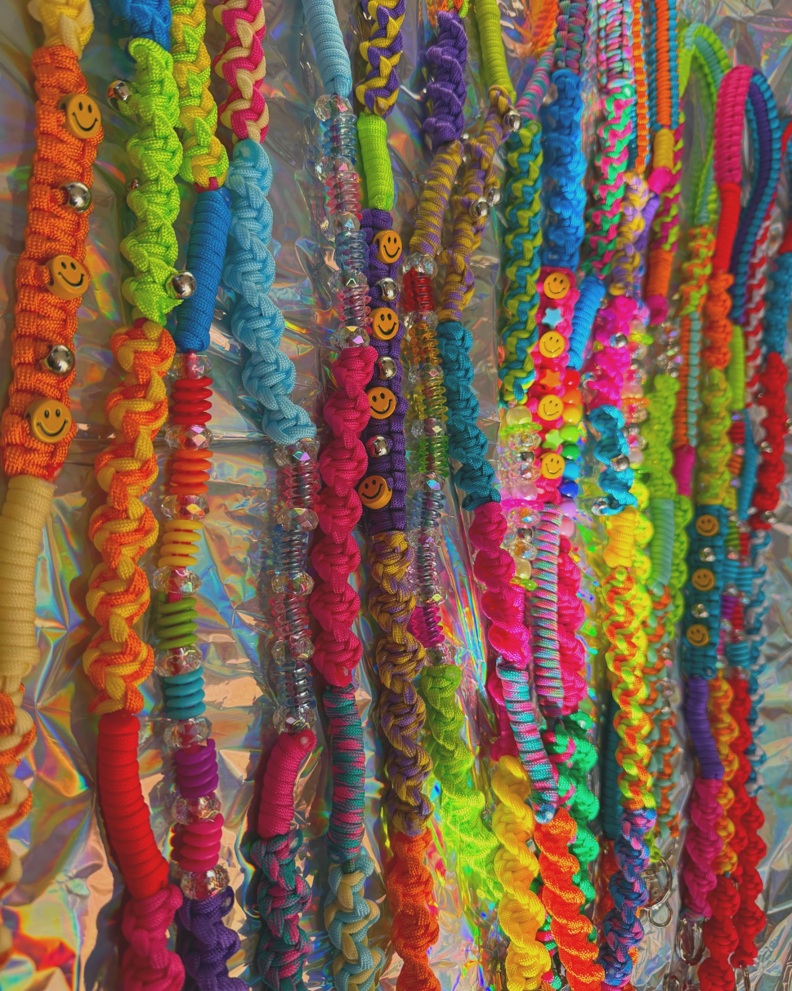 スマホショルダー 約130cm(ナスカン含む) ニコちゃんビーズと星のビーズで とにかくカラフルにHAPPYな気持ちになるようにと考えて制作しました☺︎ ⚠︎購入前に必ずshopping guideをお読みください。