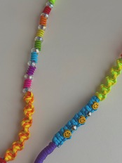 NEWパーツのぐるぐるビーズとオーロラビーズを入れて編みました。