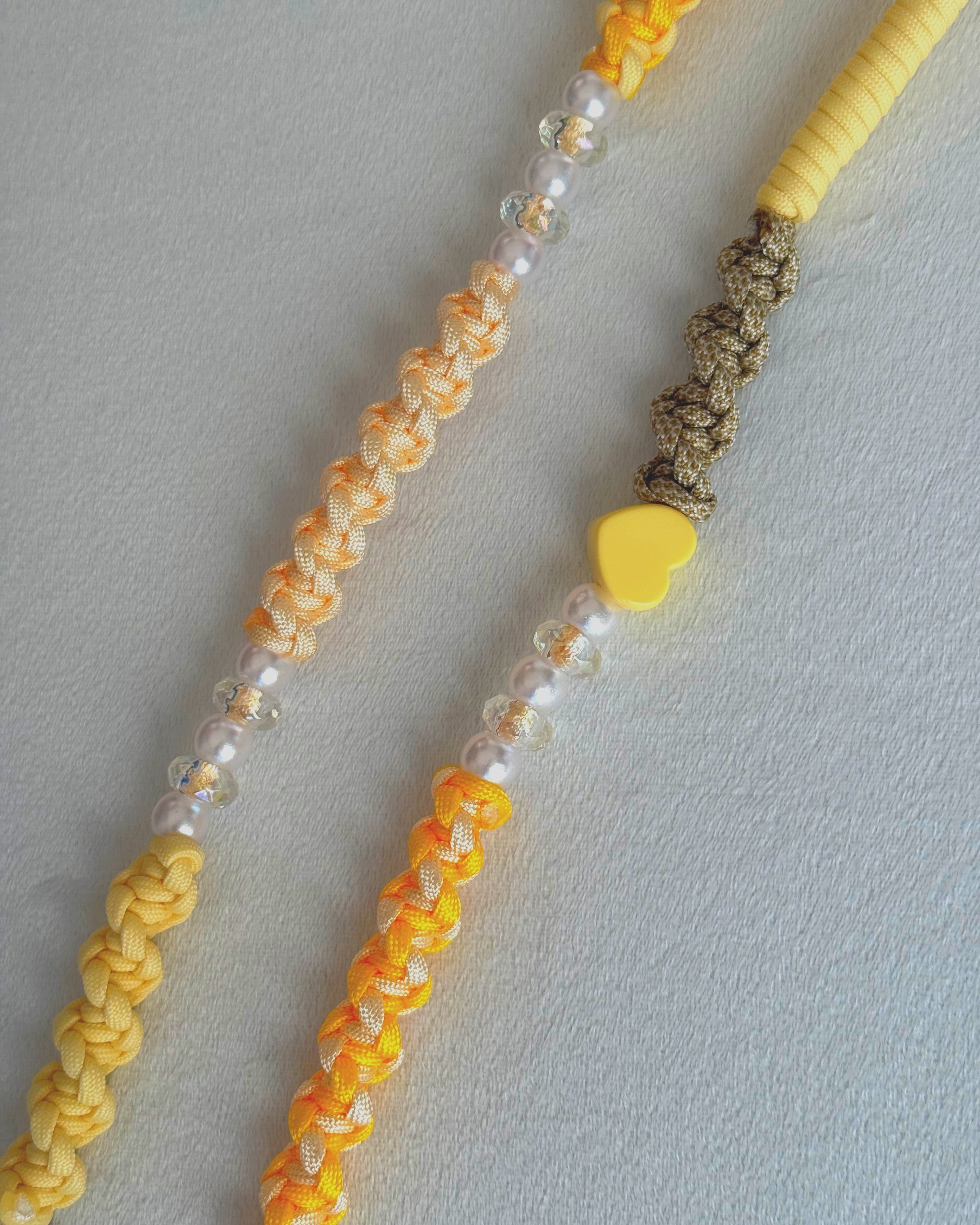 NEWパーツのパステルカラーのハートとオーロラビーズとパールビーズを入れて編みました。